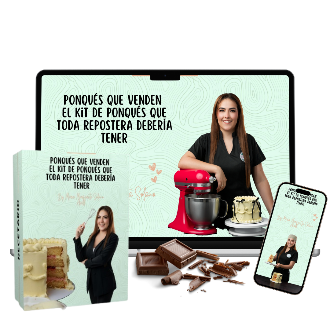 Son herramientas que complementan el Método Ponqué Real para que no solo aprendas a hacer tortas increíbles, sino que también sepas qué ponqué usar, cómo rellenarlo, cómo cubrirlo, cómo conservarlo y hasta cómo presentarlo como una pastelera pro.